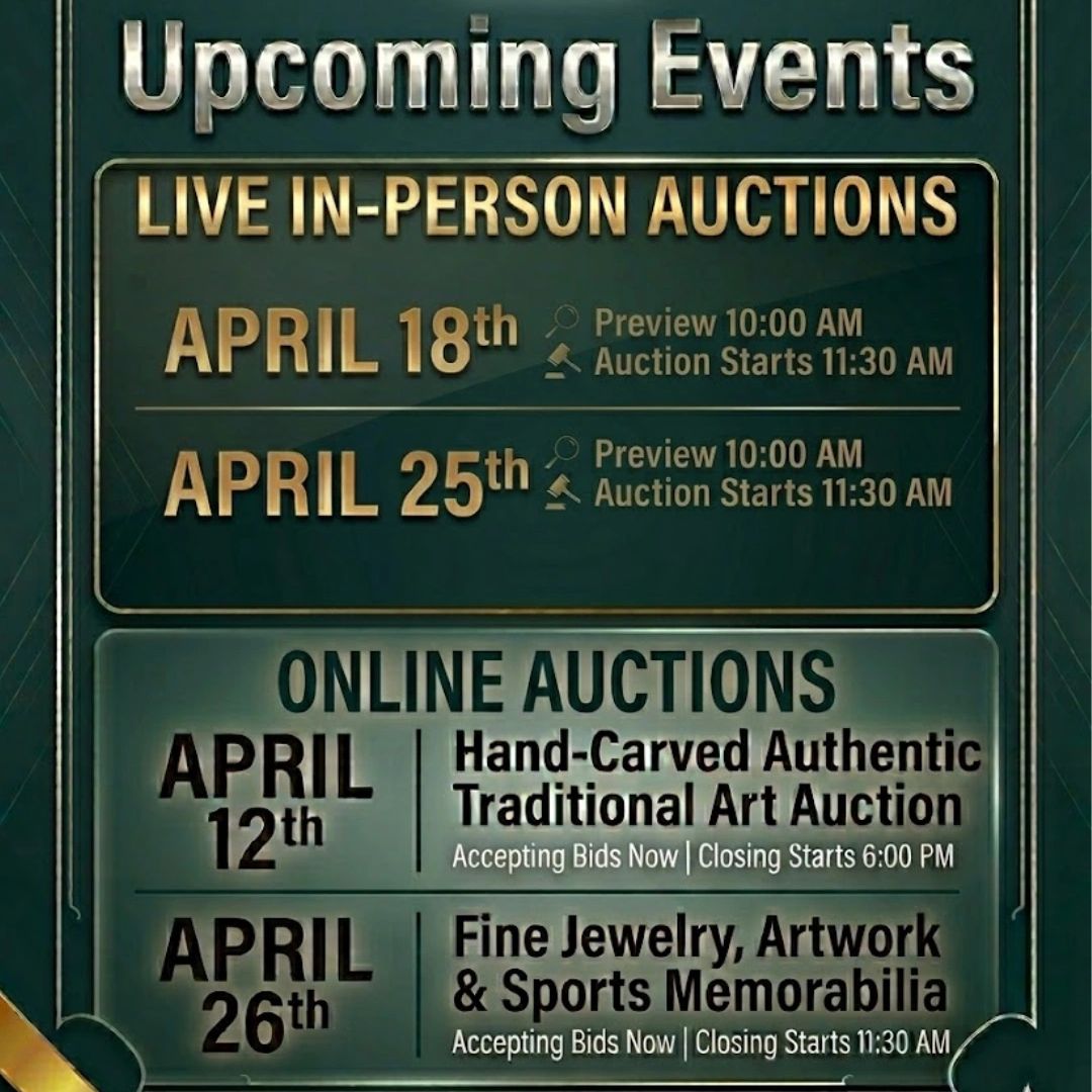 Looking to sell your valuable items through auction? Our experienced team of auctioneers specializes in fine art, jewelry, décor, collectibles, and more. We make the estate process seamless, handling every detail with care and expertise.
